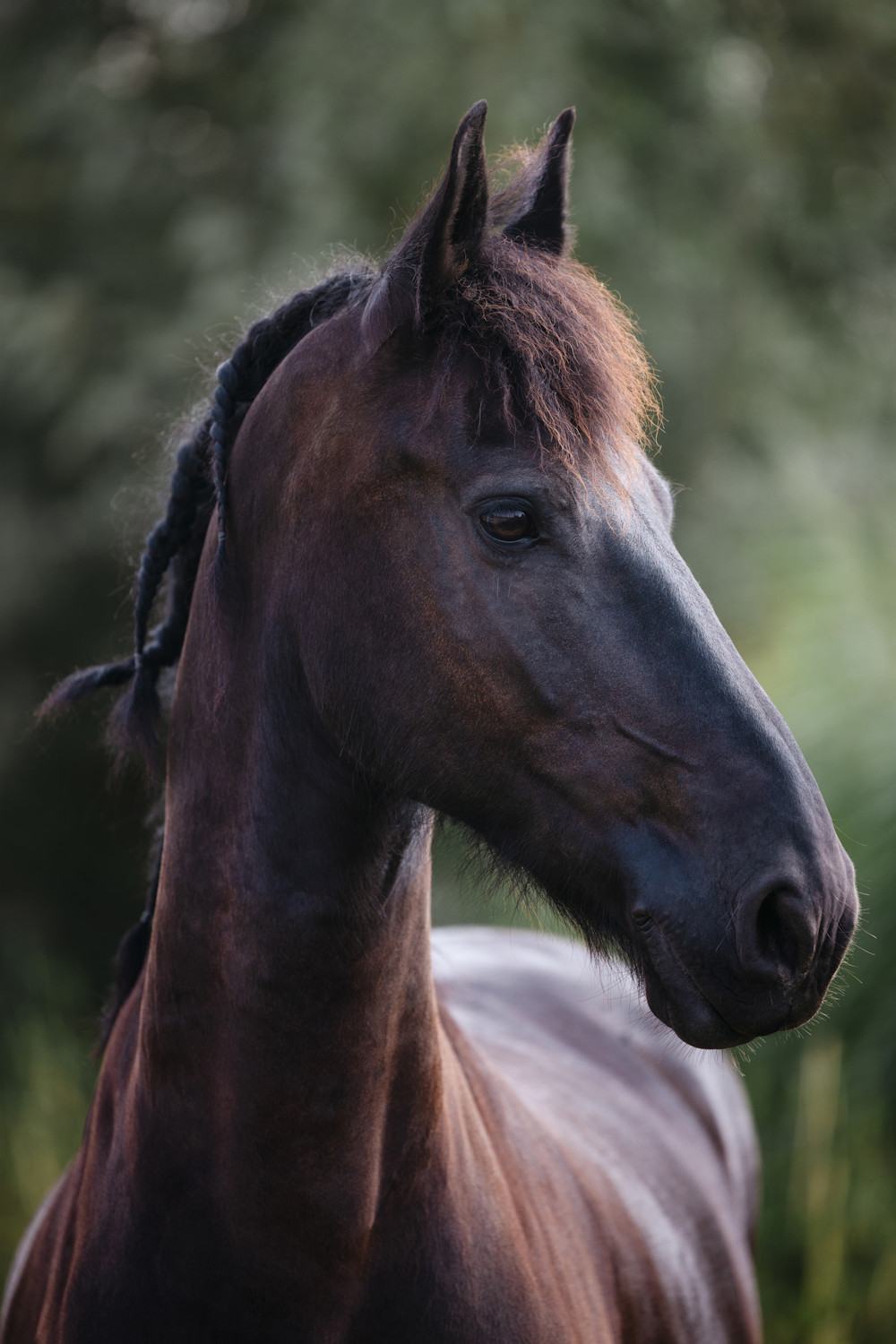 Sirius is ons kleinste paard; Friezen worden meestal niet zo groot. Maar dat zou je, door zijn imposante postuur, helemaal niet zeggen als je hem ziet staan. Sirius zijn kwaliteiten liggen in de dressuur. Hij is sensibel en een allemansvriend. Hond, mens of paard; dat maakt hem niks uit.